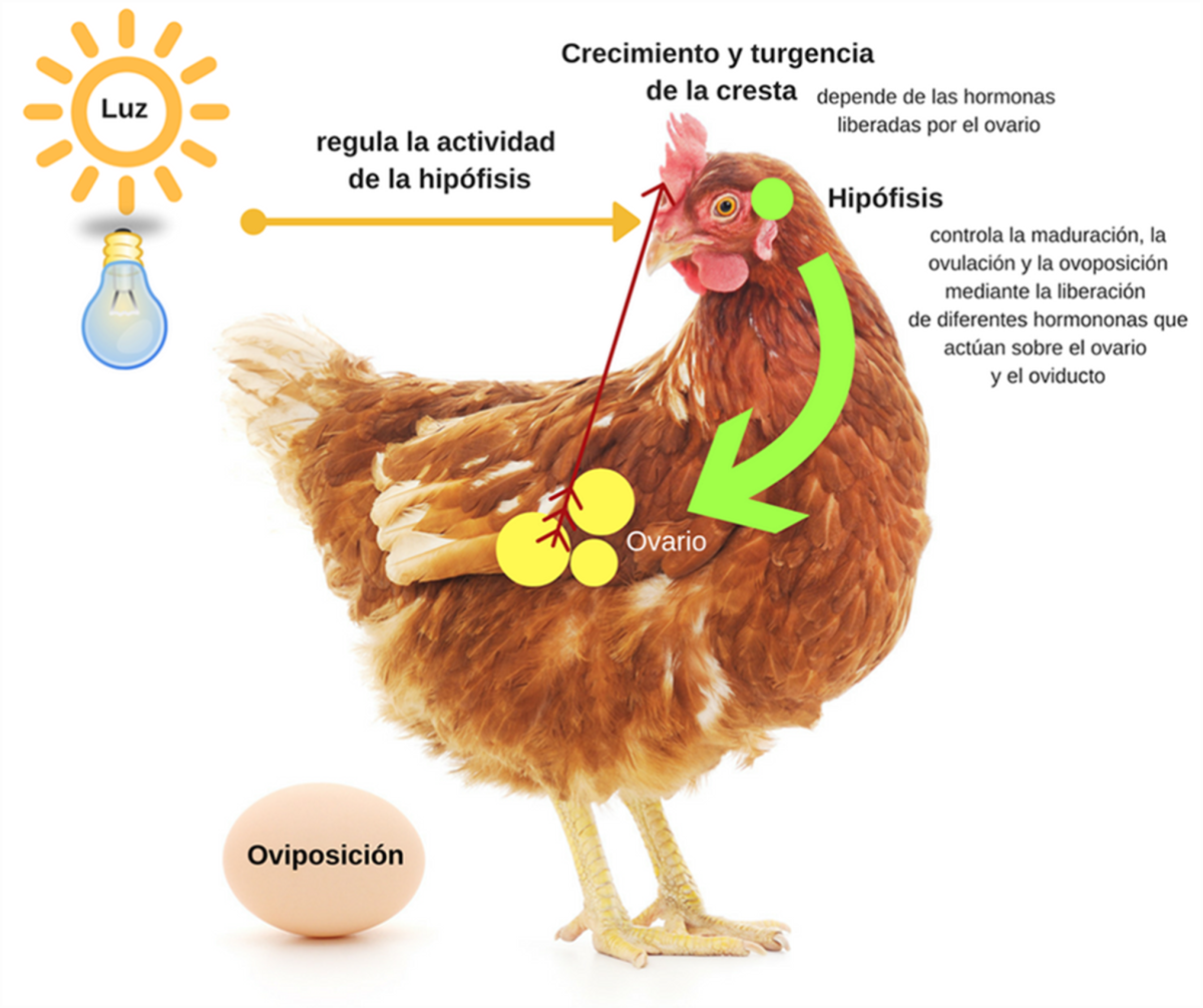 La luz actúa como un estímulo ambiental que regula funciones fisiológicas a través de un sistema complejo de percepciones visuales y no visuales. Cuando la luz llega al ojo de la gallina, no solo le permite alimentarse o hidratarse; también activa una cascada de señales nerviosas que llegan al hipotálamo y, desde allí, estimulan la hipófisis.